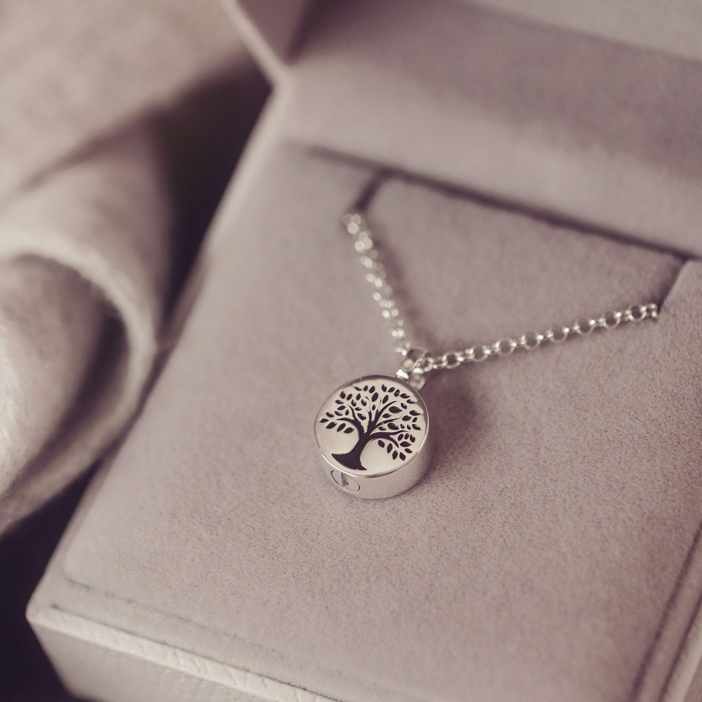 Jewellery to hold Ashes of your loved one. Designed to hold a small token of cremation ashes, our beautiful range of Ashes Urn Jewellery is the perfect way to keep a loved one close in a beautiful piece of memorial jewellery. All of our Urn Necklaces are made from Sterling Silver and come with the equipment and instructions needed to transfer a small amount of ashes into the Necklace. Choose to have your Ashes Necklace personalised with a message or date, or we can even use a copy of your loved one's true handwriting taken from a note or greetings card. Your necklace will come beautifully presented and ready to love forever.