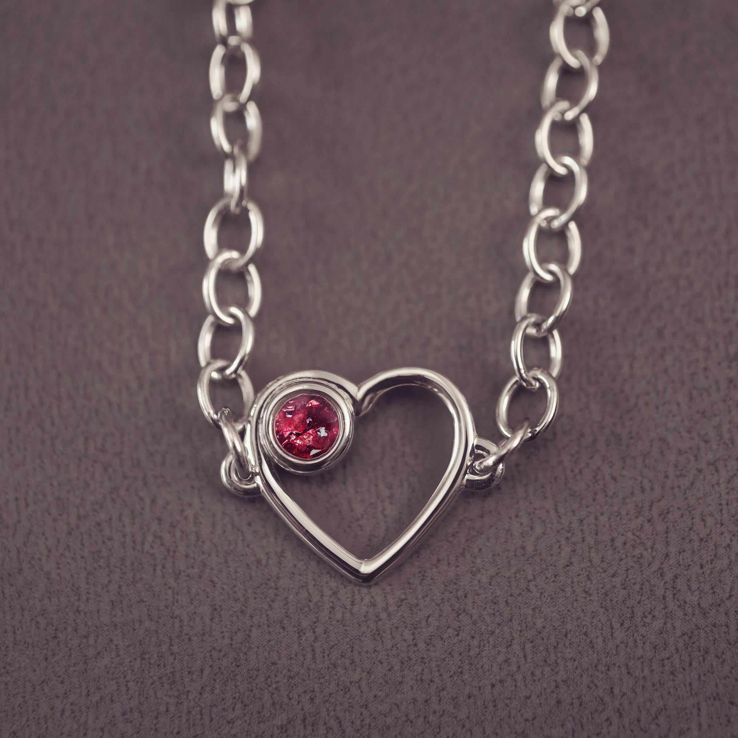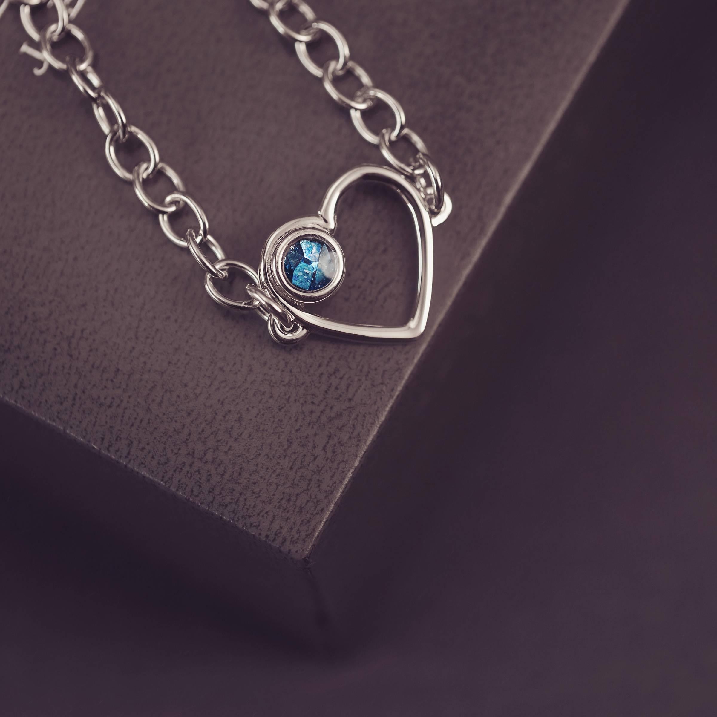 A beautifully elegant piece of jewellery, the Cremation Ashes Heart of Love Bracelet is created with a small heart charm which holds cremation ashes from your loved one.