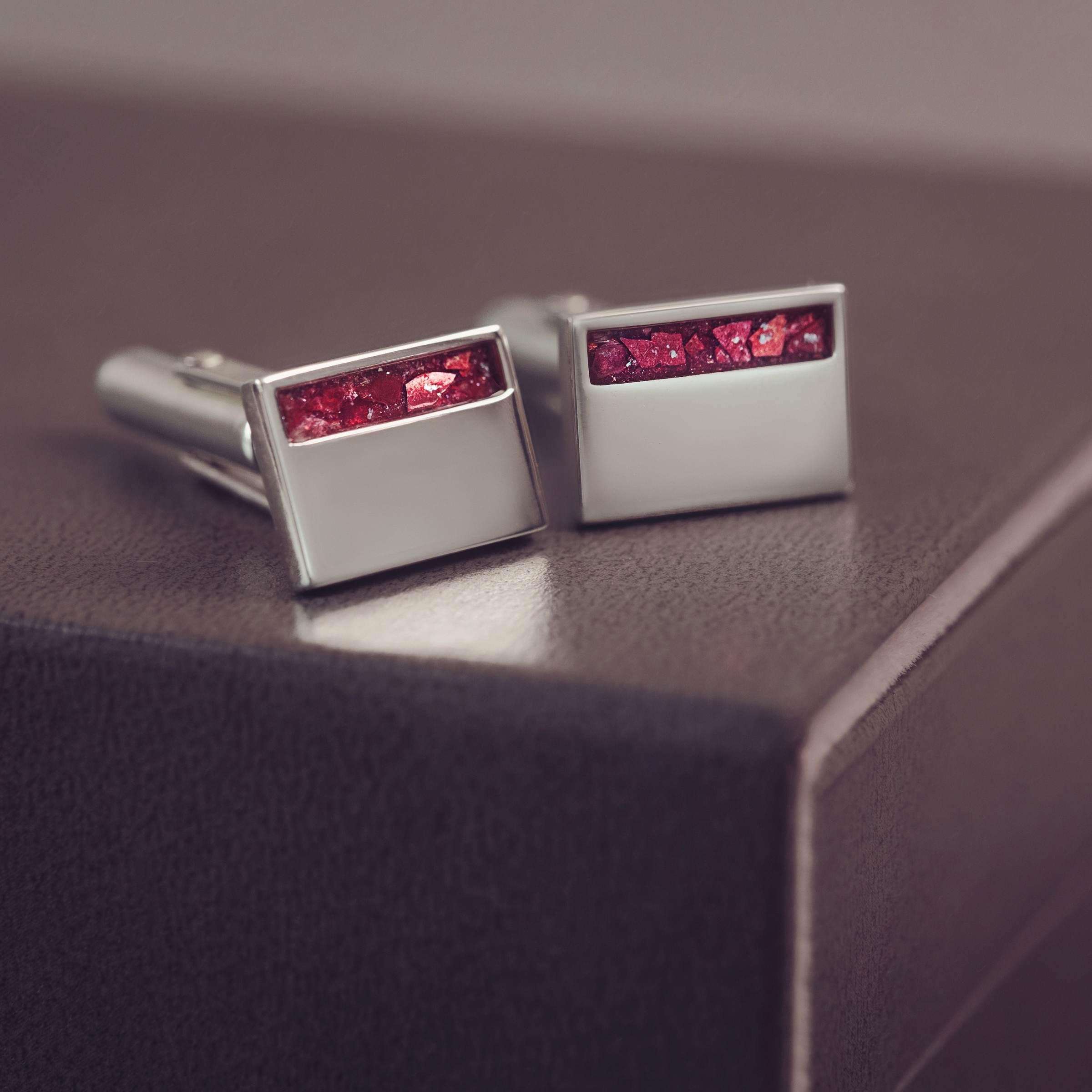 Our beautiful Cremation Ashes Cufflinks are created using the Ashes that you supply using our easy return Ashes Collection Kit. Each cufflink is very carefully set with the Cremation Ash and made in a colour of your choice. All of our Ashes Jewellery comes with a certificate of authorisation.