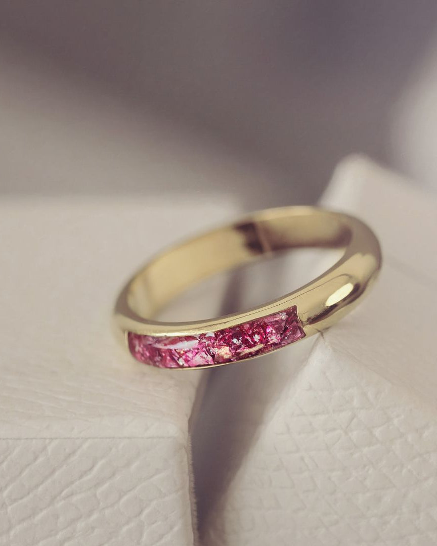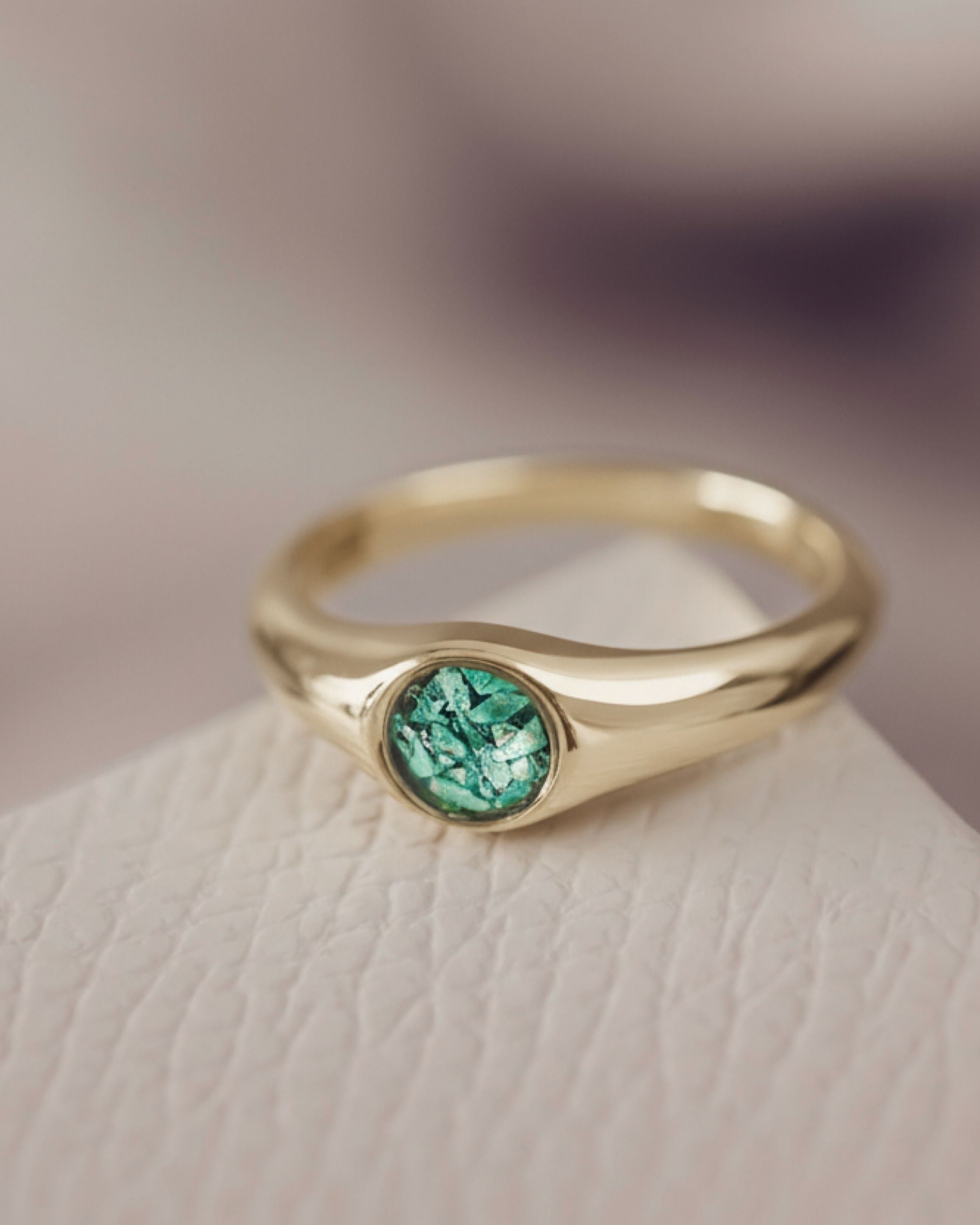 The most beautiful piece of Jewellery you'll ever own, our Cremation Ashes Rings are created using the Ashes from your loved one. The Cremation Ashes are very carefully layered and set into a glass like resin for ultimate strength and longevity. Available in a range of colours, your ring will be made with love by us in our Cumbrian Studio. Supplying the Ashes is an easy process and any unused Ash will be returned to you with your finished order.