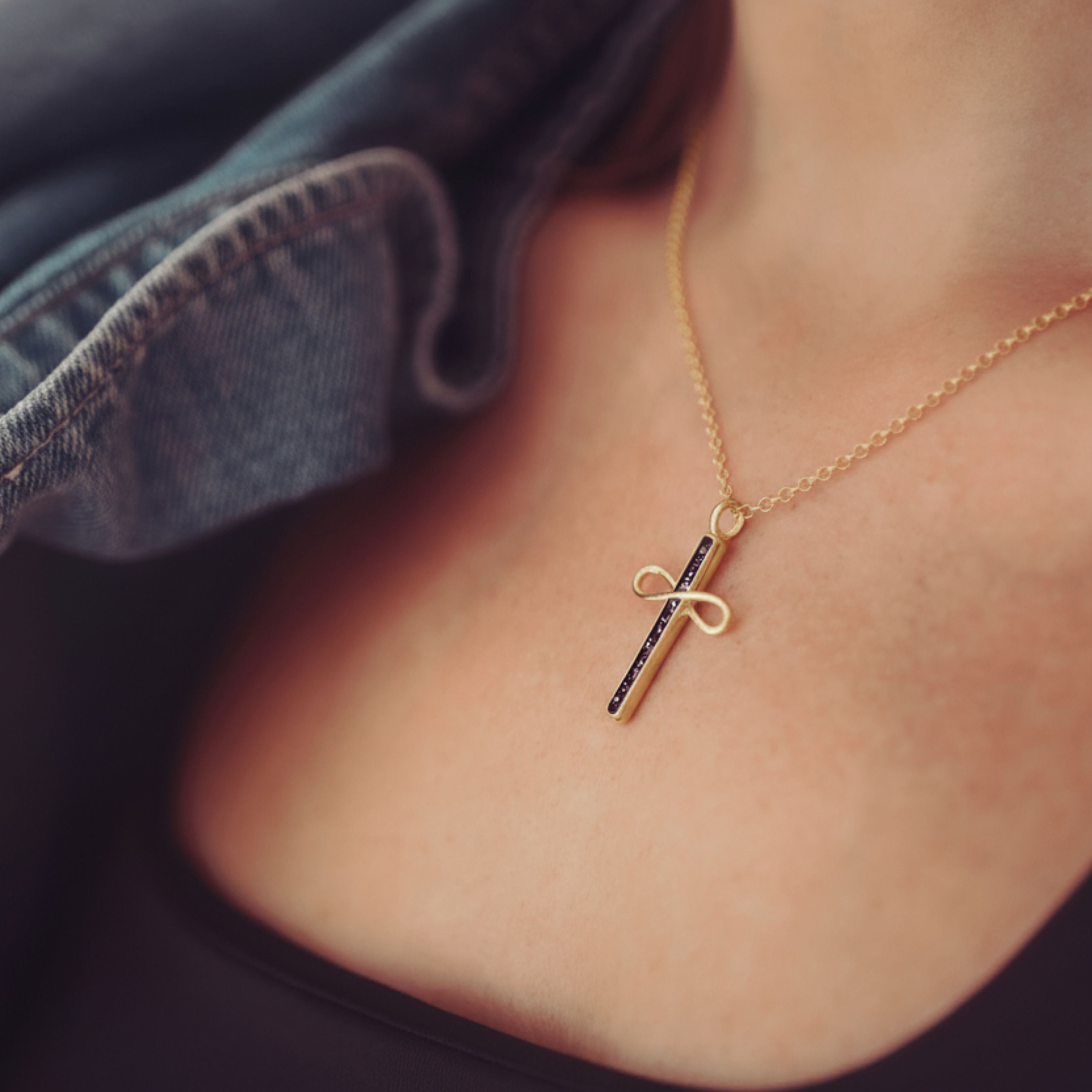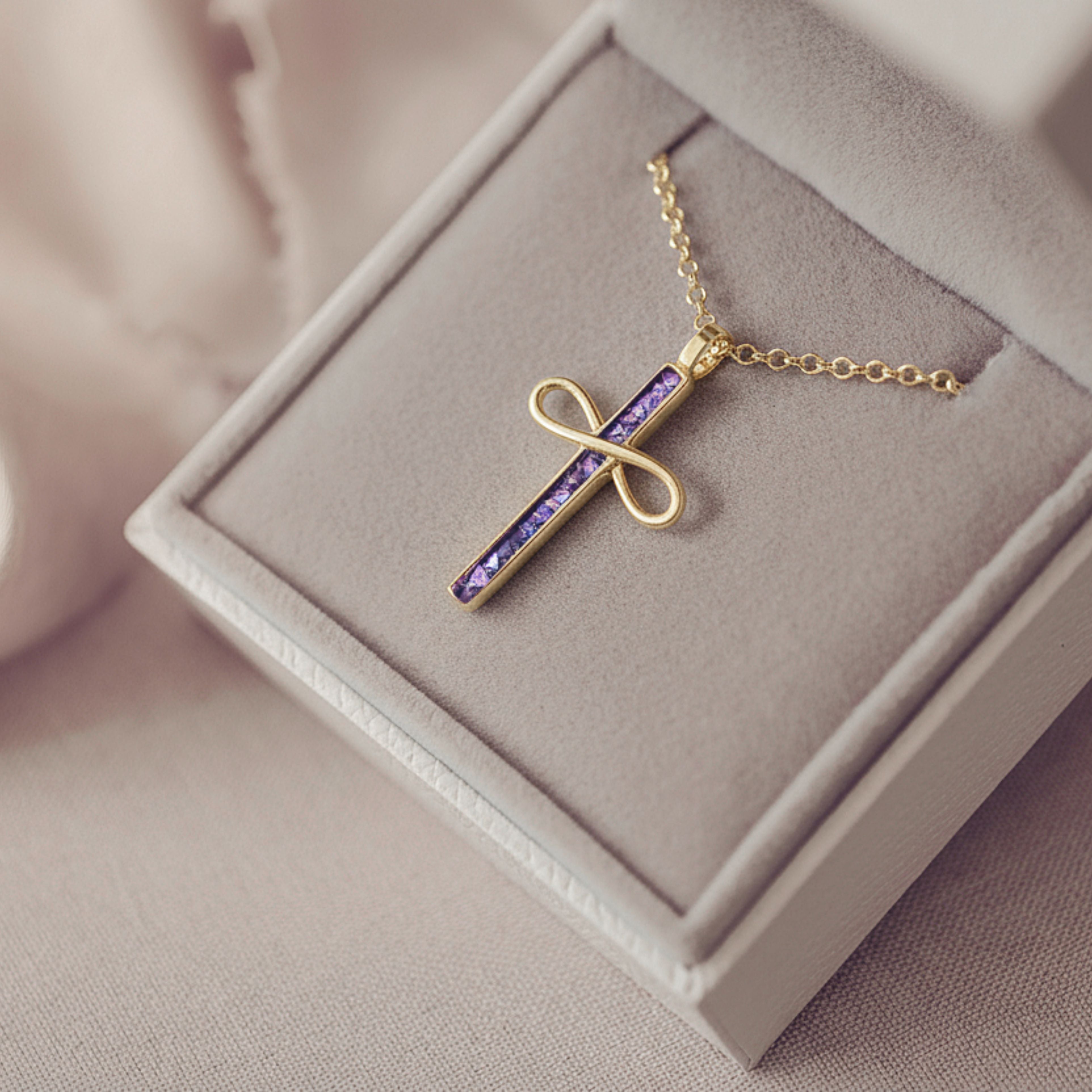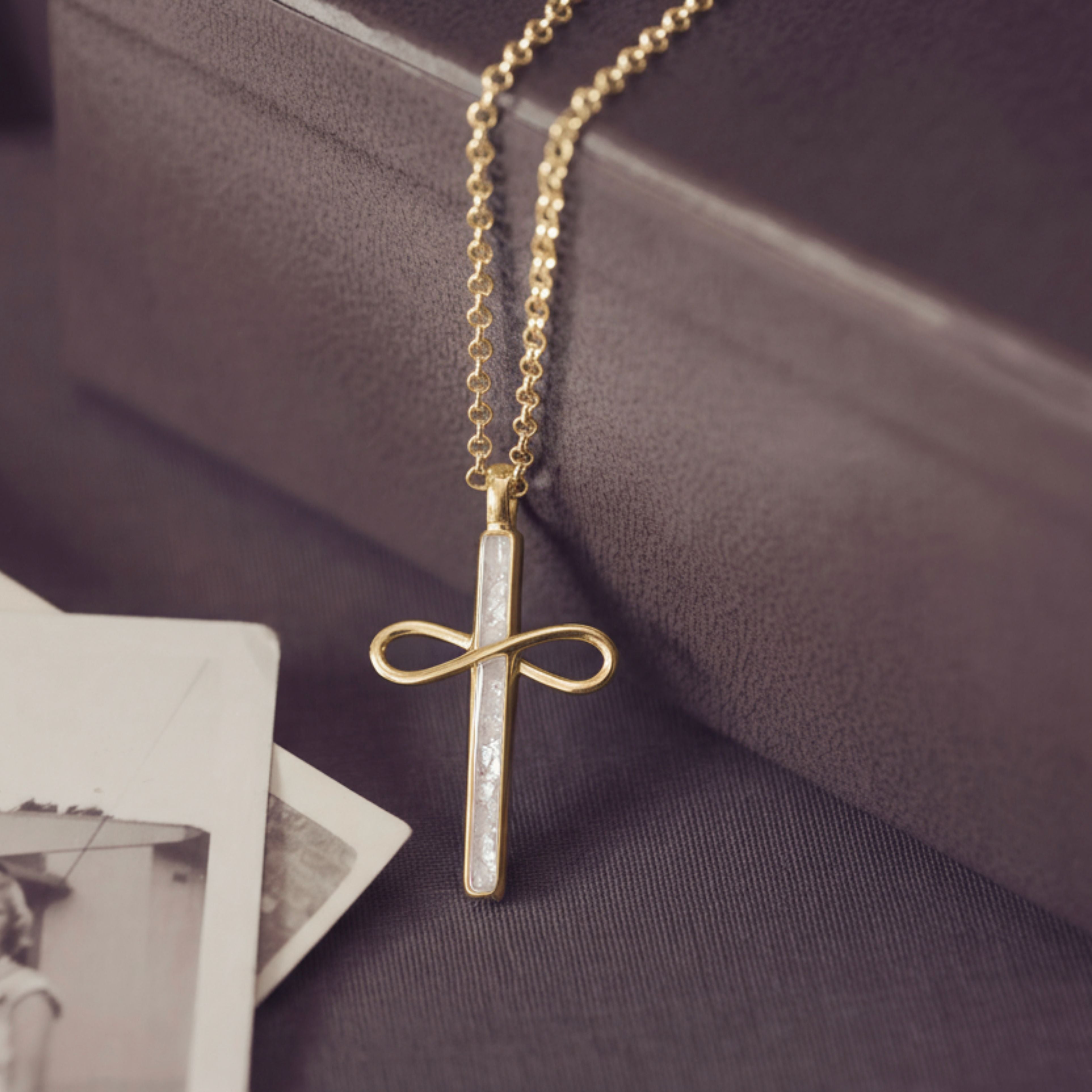 Gold Cremation Ashes Infinity Cross Necklace