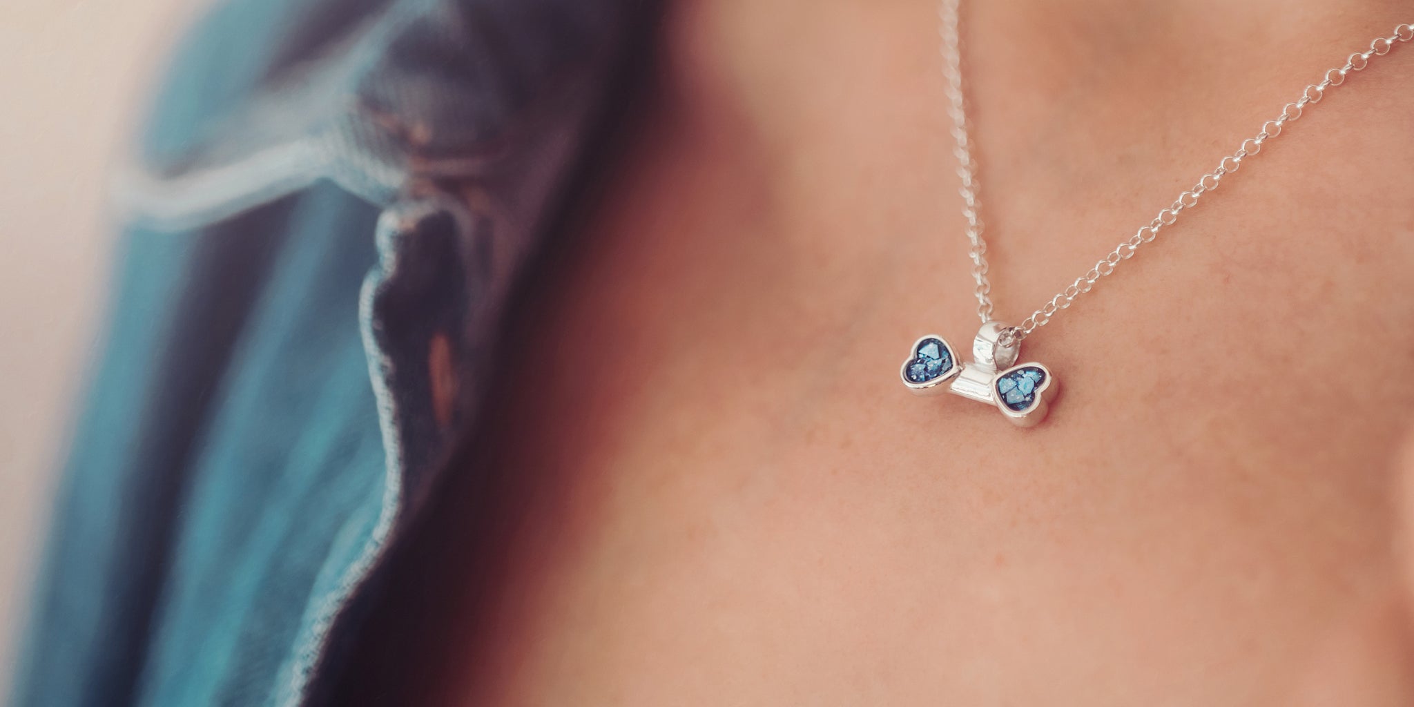 Grieving the loss of a beloved dog or cat (or any precious animal friend) is an extremely painful process. The aftercare service now offered to grieving pet families has come on leaps and bounds with most vets now offering private cremations with the family receiving the pet's ashes afterwards. Our beautiful Pet Ashes Jewellery is created for families looking for a way to keep a part of their precious pet with them forever. Available in a selection of designs including Pet Ashes Necklaces, we also offer a choice of colours to create a beautiful piece of Jewellery made from your pet's ashes.